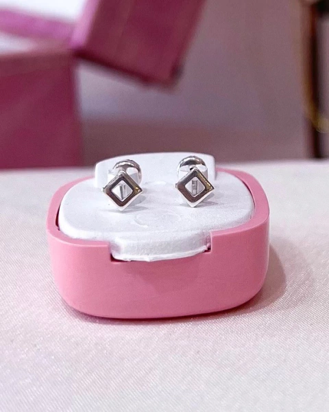 Par de aros abridores con forma de cubo calado mini en PLATA 900